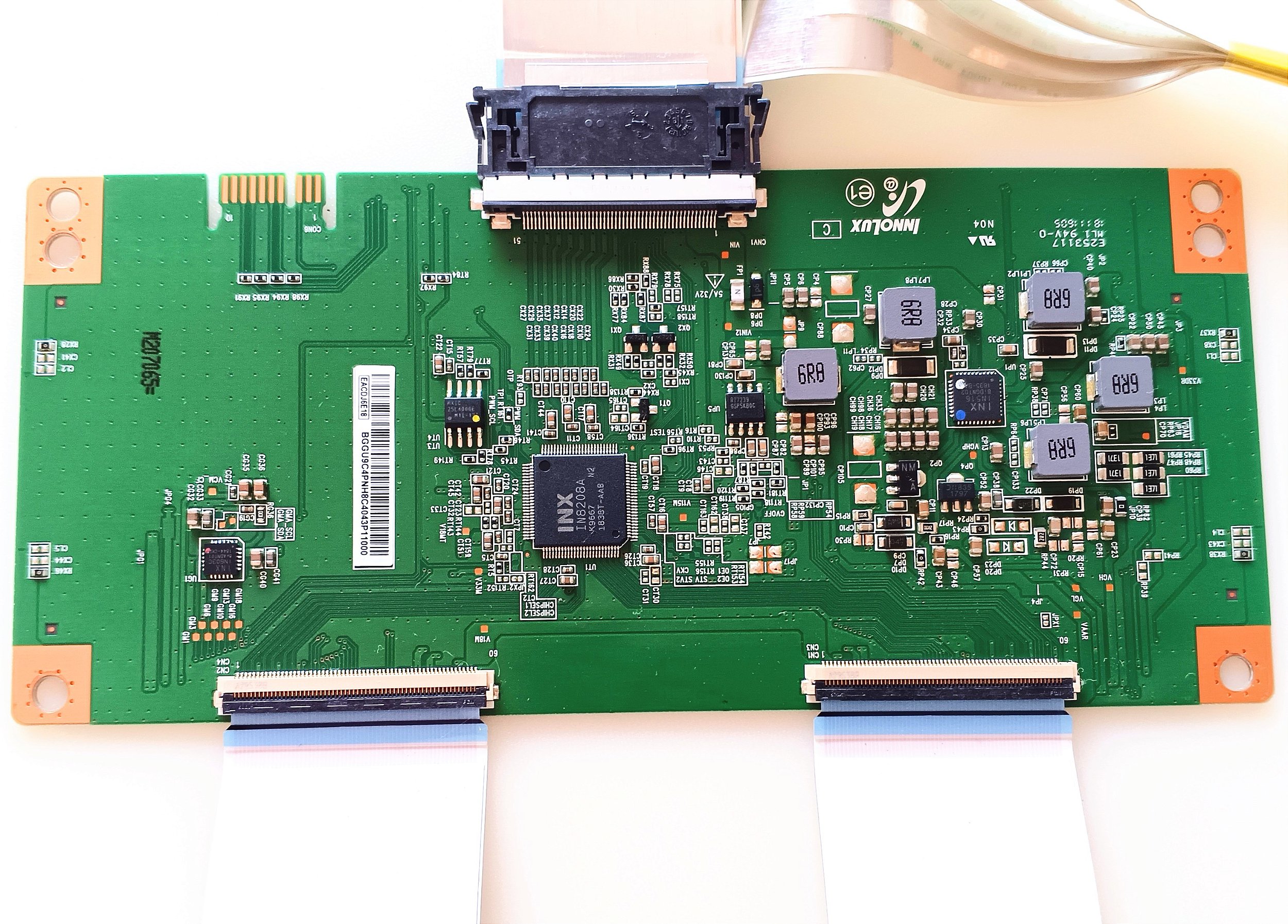A placa T-con possui circuito integrado de controle e conectores flexíveis que fazem a ligação interna entre o painel LCD e demais partes da TV. Sua função é crucial na formação da imagem e na estabilidade do funcionamento do aparelho. Produto ideal para substituir peças danificadas e restaurar a performance original do televisor.