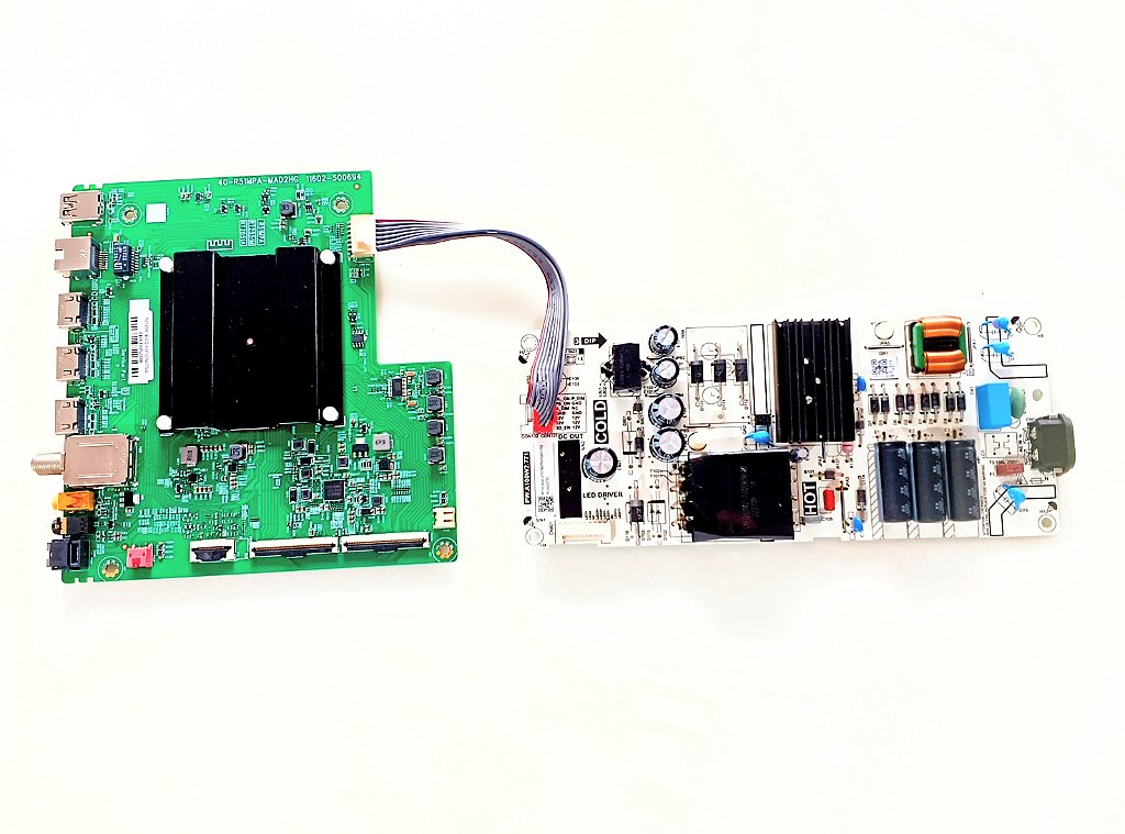 é uma peça de reposição original que integra as funções da placa principal (main board) e da placa da fonte (power board) em uma única unidade para este modelo de TV específico.